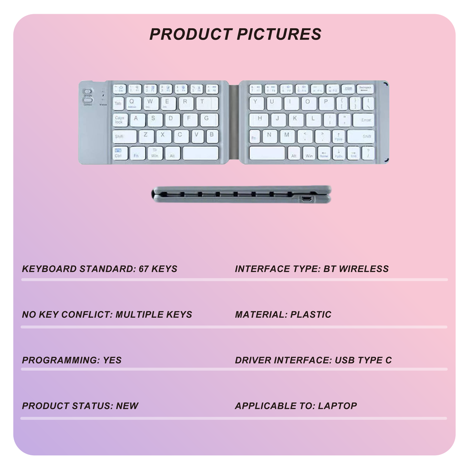 Keywords:Portable Slim Wireless Foldable Keyboard