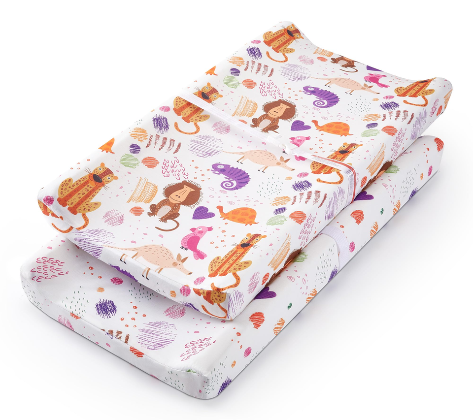 Cubierta de Cambiador Ultra Suave y Elástica con Lindo Estampado de Animales, Sábanas para Cambiador de Pañales para Niñas