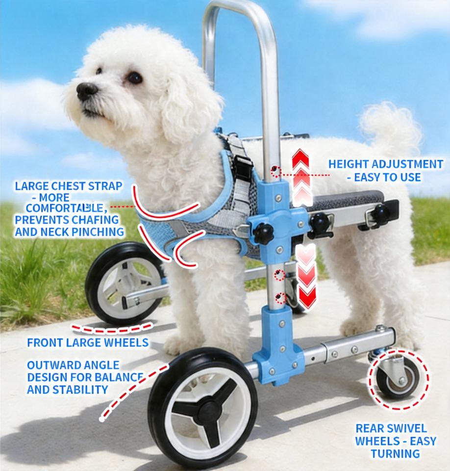Carrito de Movilidad para Mascotas Ultraestable de 4 Ruedas - Soporte Patentado Ligero para Patas Delanteras para Perros Lesionados (Tallas S/M/L)