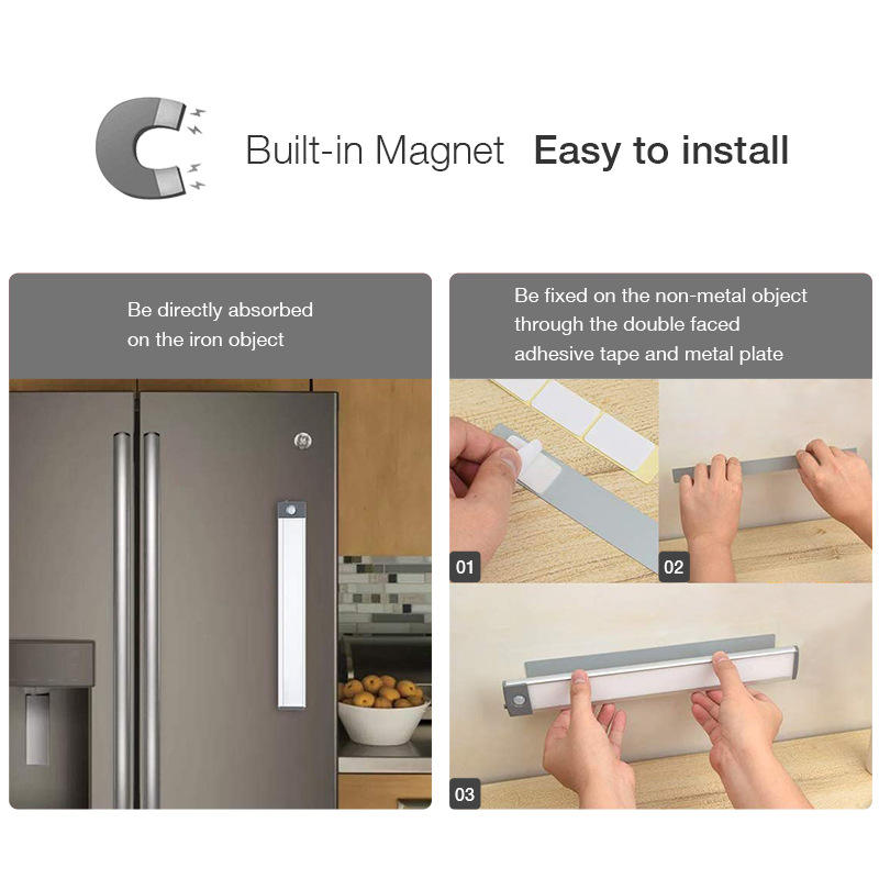 Lámpara de Gabinete Ultrafina Recargable con Sensor, Luz Inductiva LED para Cocina, PC, Moderna, Magnética de 80, para Hogar, USB, Blanca