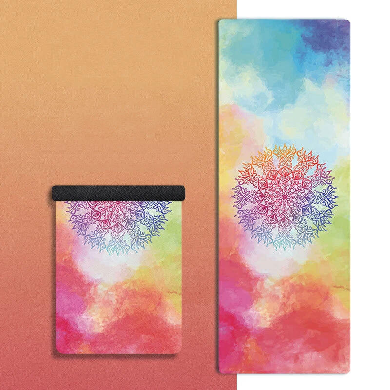 Tapete de Yoga Ultrafino de 1.5mm, Plegable, Multicolor, de Gamuza, Profesional, Antideslizante, con Reverso de Caucho Natural Ecológico, 72 Pulgadas, con Bolsa de Transporte