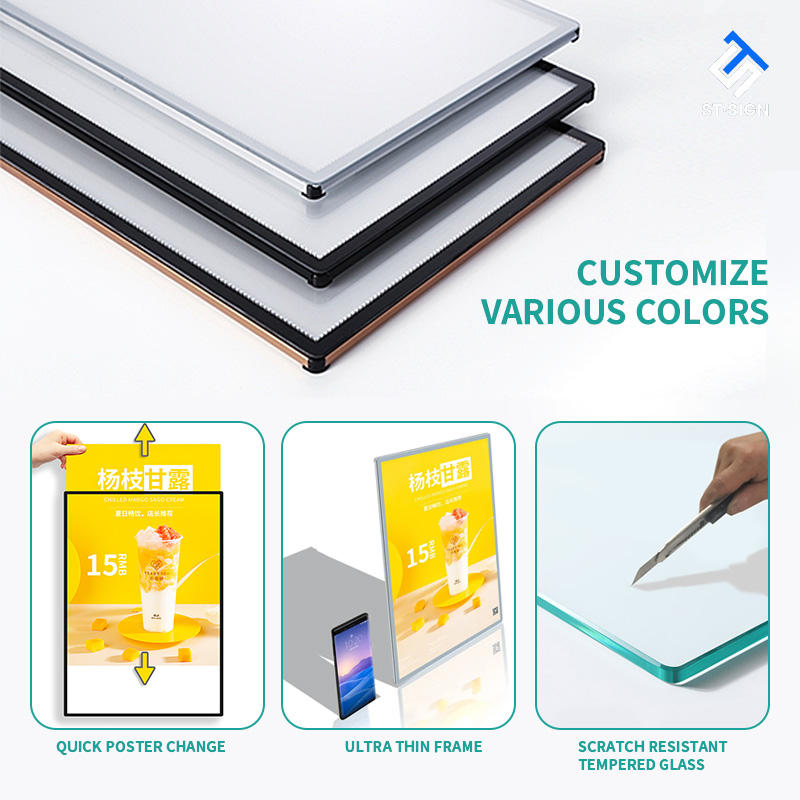 Pantalla de caja de luz LED ultrafina para comida rápida, tablero de menú de café, cartel rectangular A4, venta al por mayor de fábrica