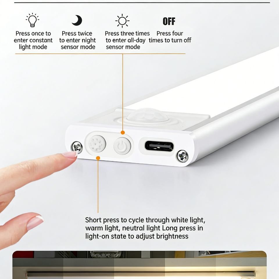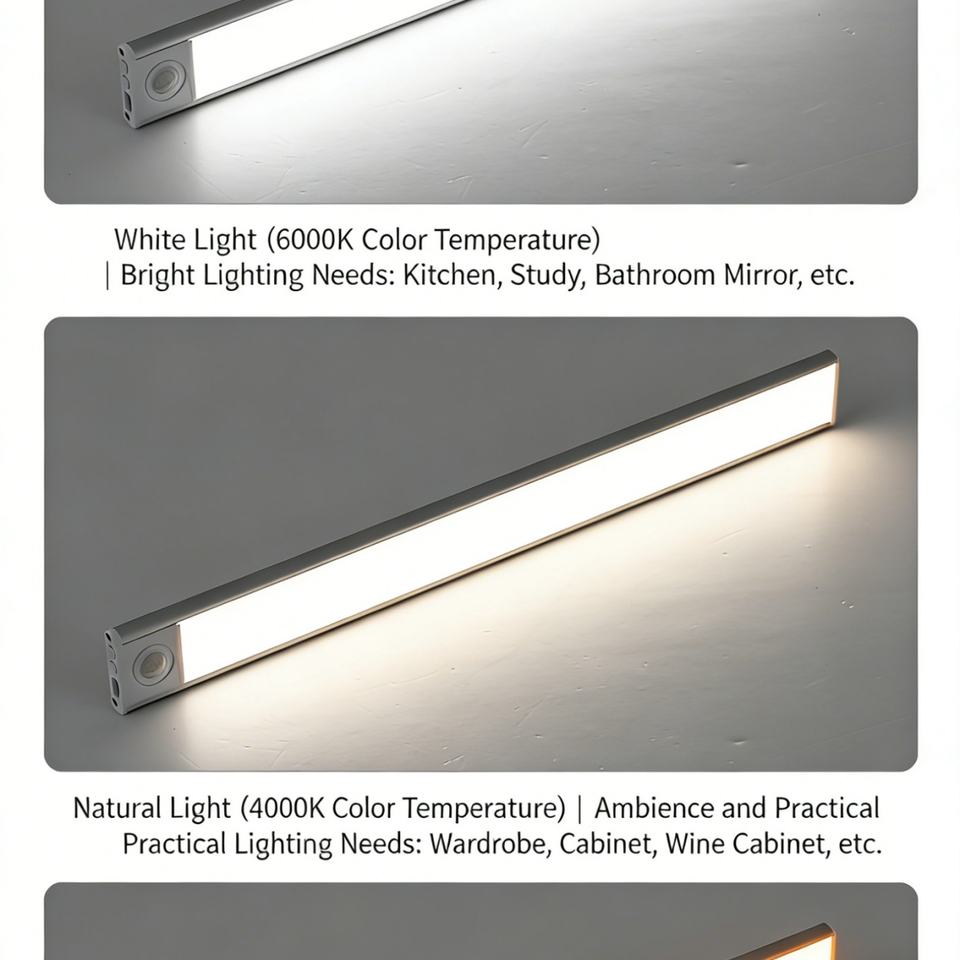 Luz LED Lineal Ultrafina Inteligente Recargable con Sensor de Movimiento, Adhesivo Magnético, para Armarios, Gabinetes y Vinotecas