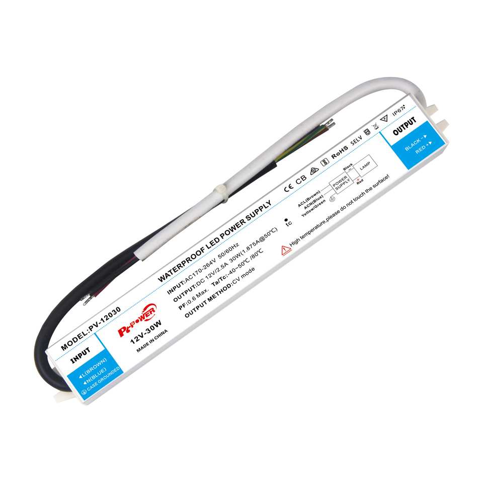 Controlador de Luz LED de Voltaje Constante de 30W, EMC, 170-264V AC DC 12V 24V, Salida Única, IP67, Resistente al Agua, Fuente de Alimentación LED para Caja de Luz