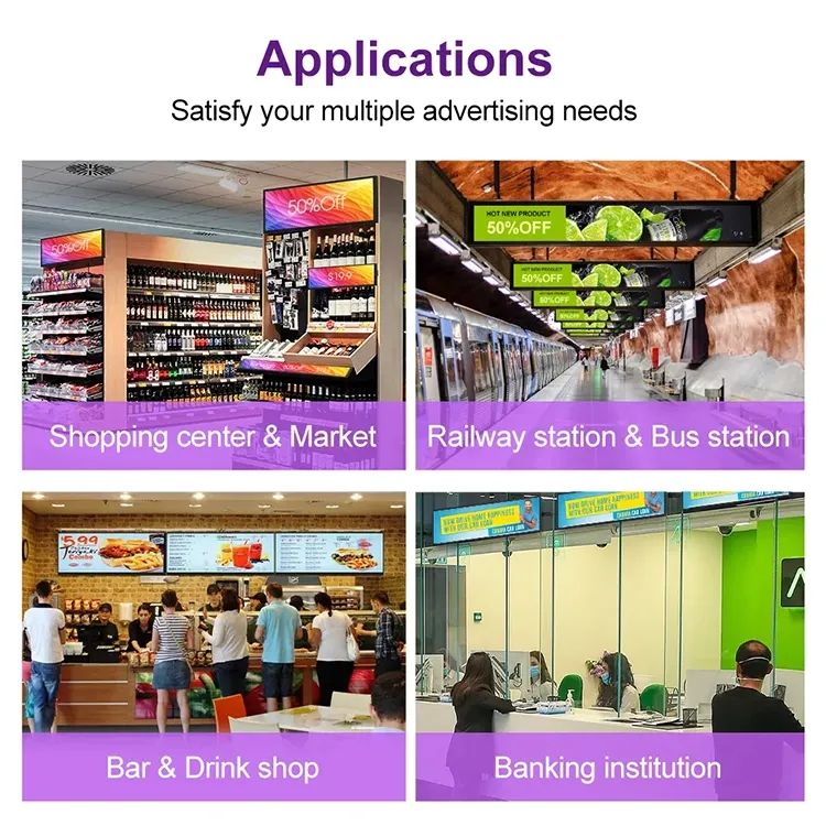Pantalla de Monitor de barra Lcd Led ultra ancha de 19-43 pulgadas para ascensor educativo tienda minorista estante de venta al por menor señalización Digital función Sdk
