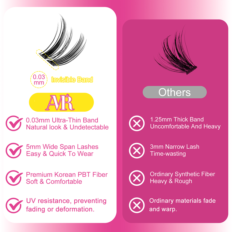 Tira transparente: La nueva tira transparente es más fina e invisible, lo que hace que las pestañas se vean más naturales y sin costuras cuando se usan.