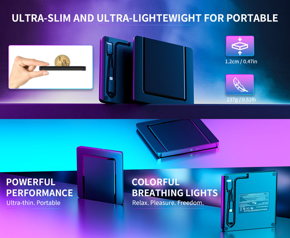 Unidad de DVD externa ultrafina EDD36 Tipo-C CD/Grabadora de DVD Lector Óptico para Ordenador Portátil Mini PC Computadora de Escritorio