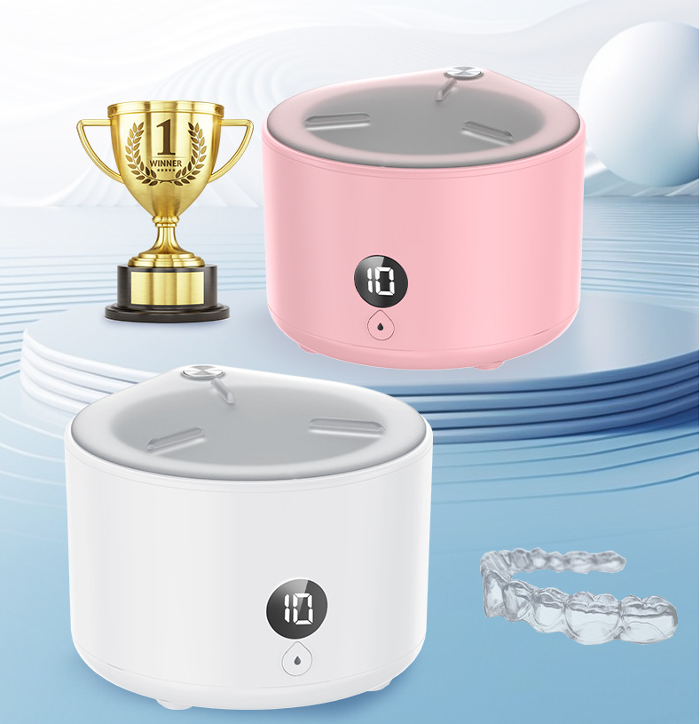 Limpiador Ultrasónico Portátil para Retenedores con Luz UV para Dentaduras Postizas, Protectores Bucales, Aparatos Ortodóncicos y Joyería