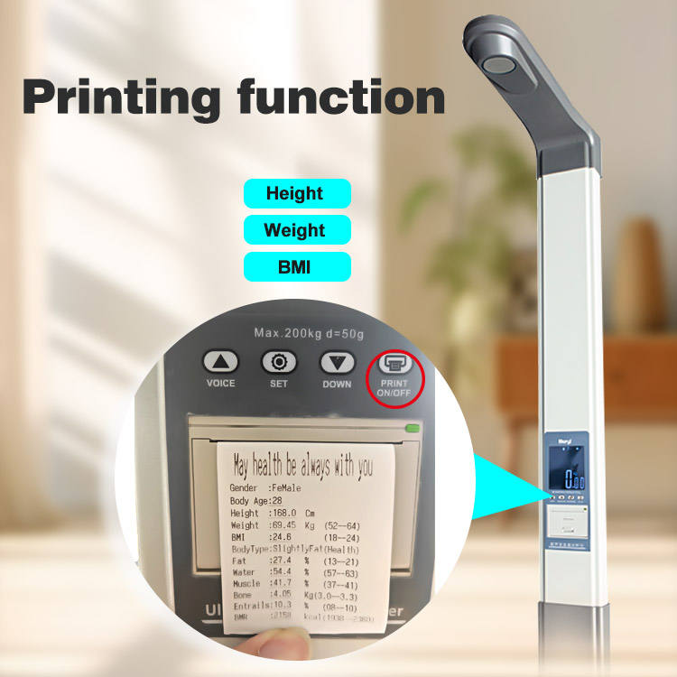 Báscula Digital Inteligente de Composición Corporal con Sensor Ultrasónico de 200 kg, Función de Impresión y Medición de Precisión de Altura y Peso para Humanos