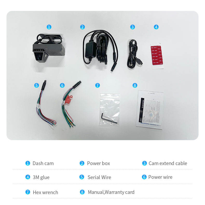 Visión nocturna, Control remoto, Sensor G, Parque de modo, Grabación en bucle, Construir en WiFi, A todo color, Control de App, La voz de interacción, Construir en GPS, Construir-en GSM, De emergencia de Accidente de bloqueo, SDK, AdasFunción