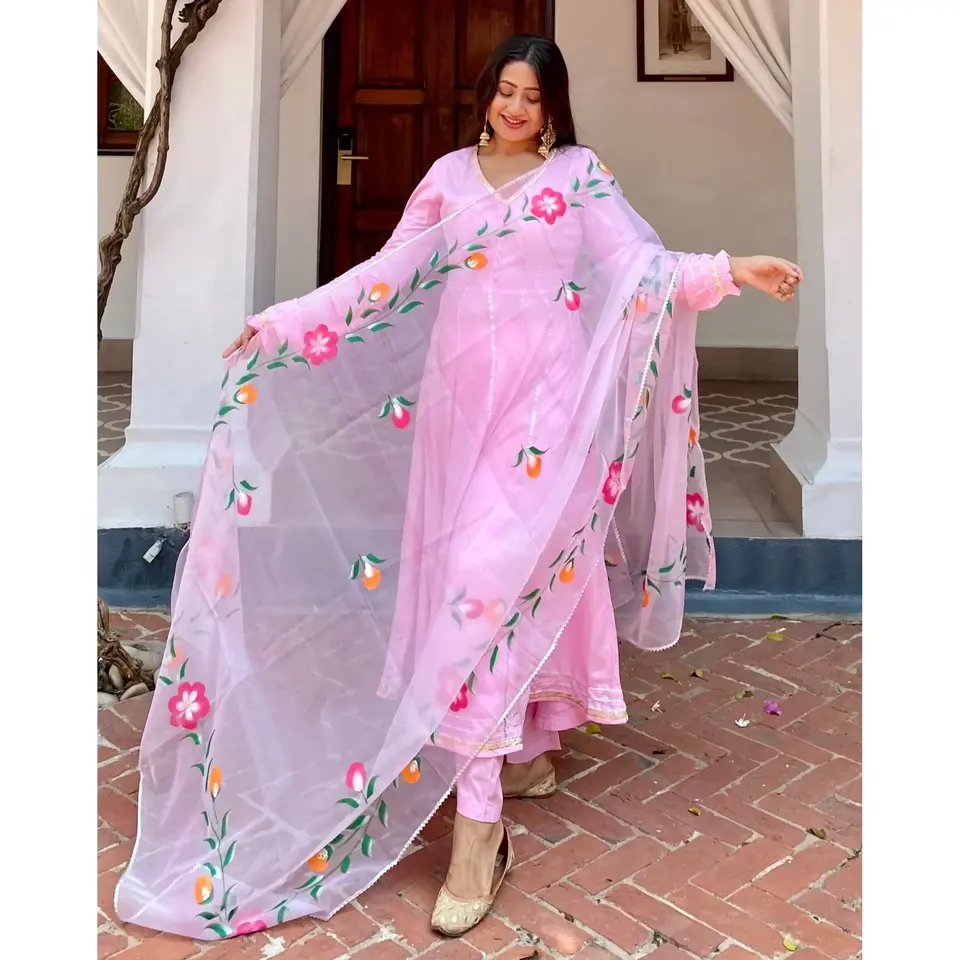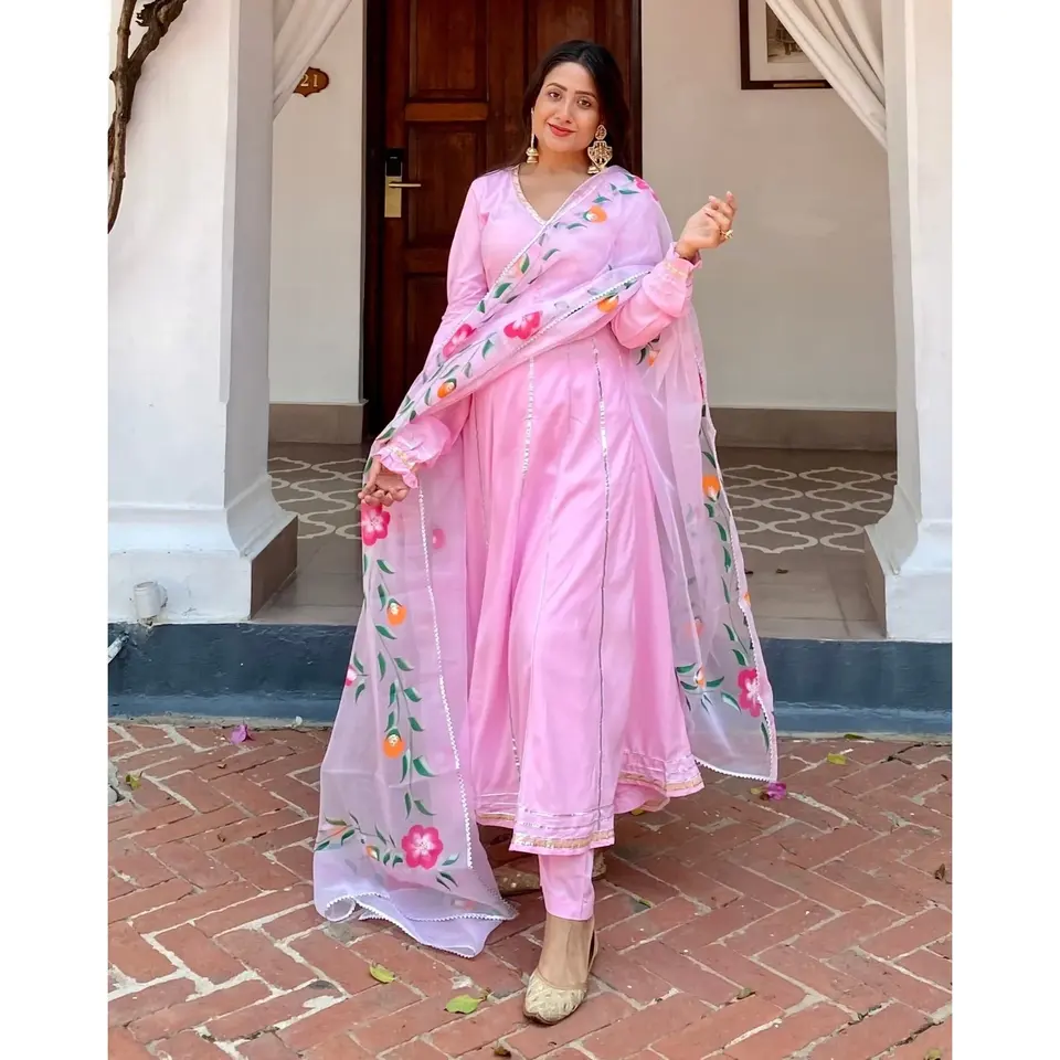 Conjunto de traje Anarkali rosa para mujer Uma