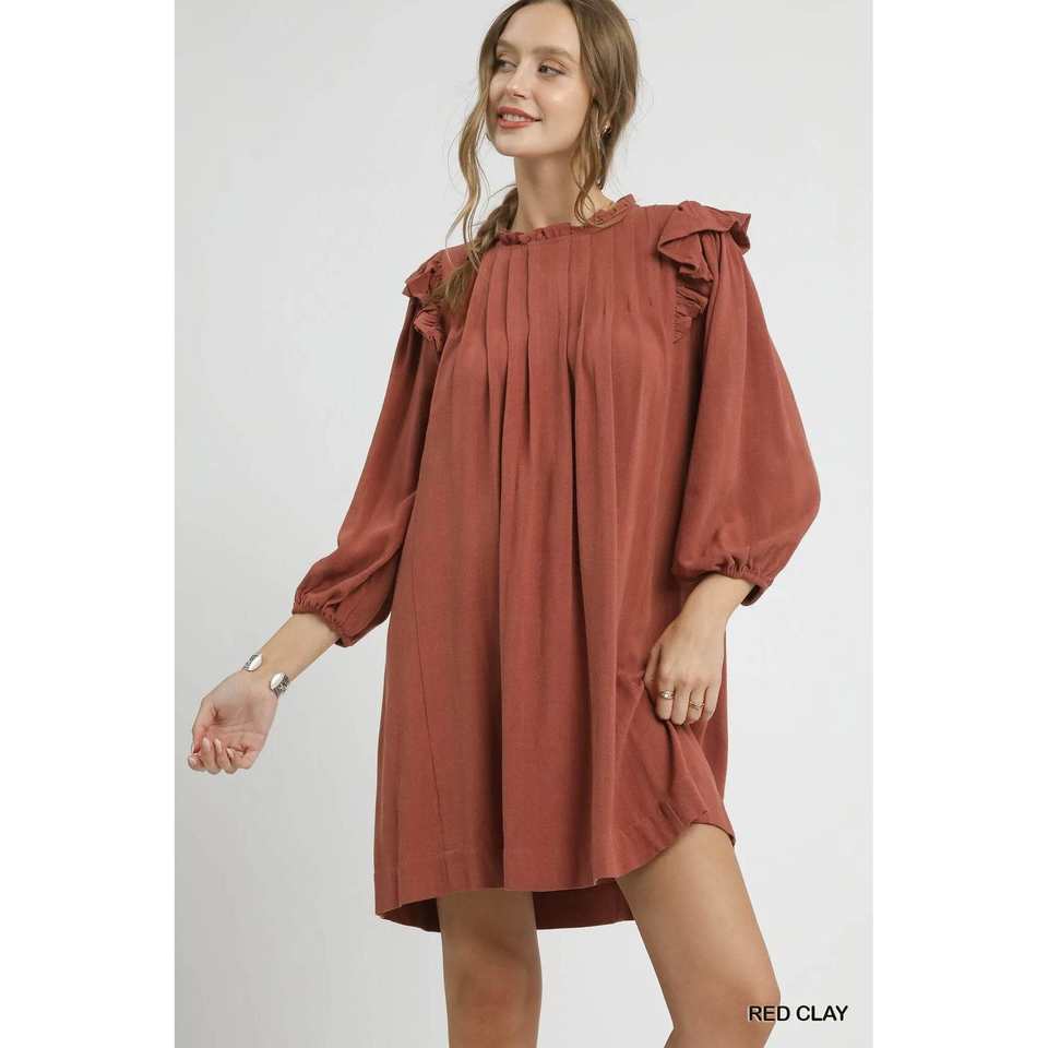 Umgee Lino Ruffle Hombro Plisado Babydoll Vestido Hand-Fulfilled Variant