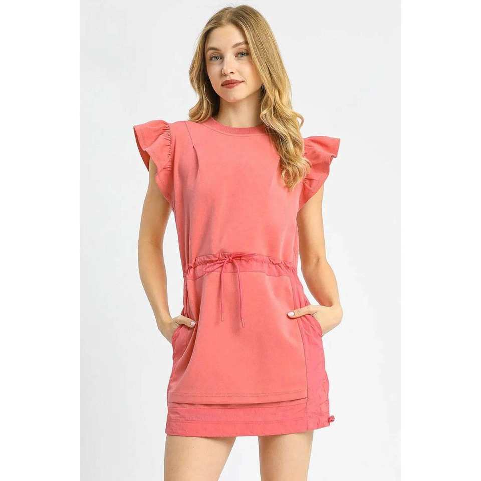 Mini vestido Umgee Luxe Knit Ruffle Sleeve con cordón-Servicio de cumplimiento manual de tamaño XS