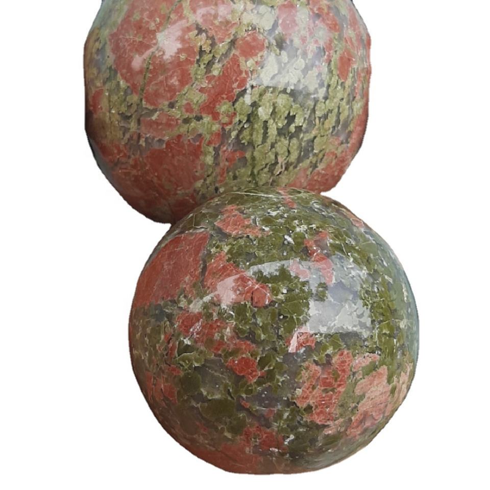 Unakite tallada Palma piedra Natural verde cristal amor curación esfera hecha a mano Feng Shui decoración del hogar regalo calidad de exportación