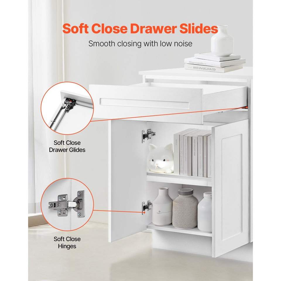 Gabinete Base Shaker Blanco de 24 Pulgadas Sin Ensamblar con Cajón, 24\" de Ancho x 24\" de Profundidad x 34.5\" de Alto, Listo para Ensamblar, Almacenamiento para Cocina