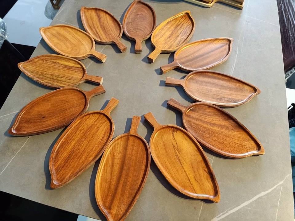 Platos de cena de madera de Acacia, platos de carga de madera irrompibles, de varios diseños, para aperitivos, postres