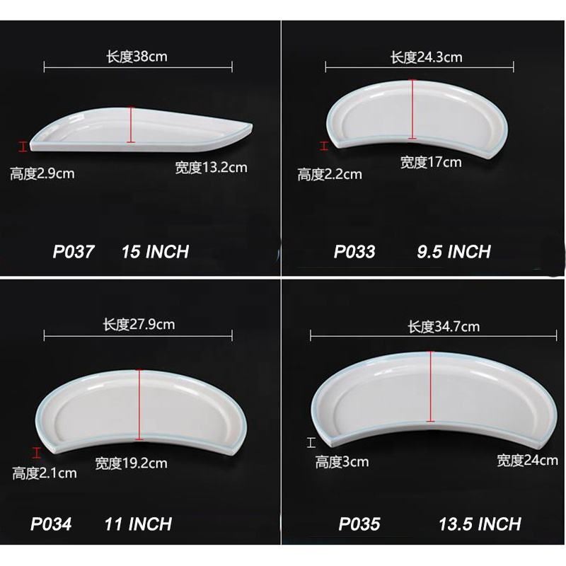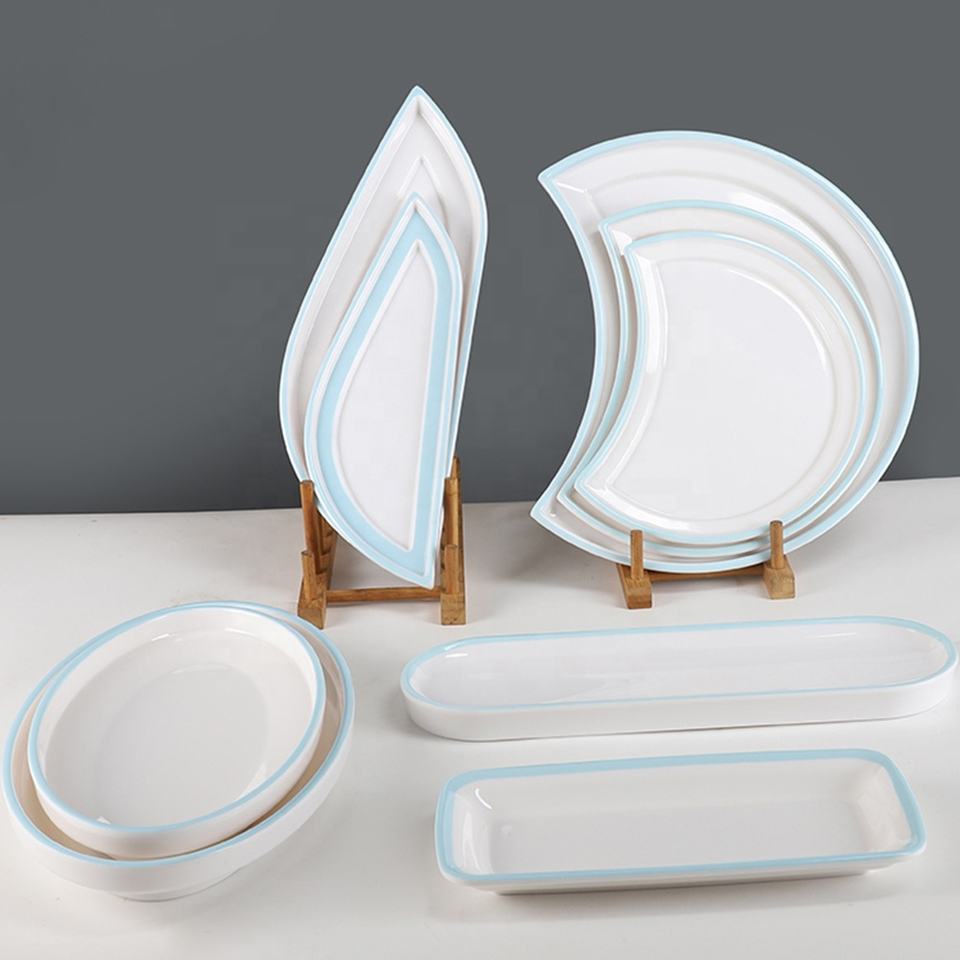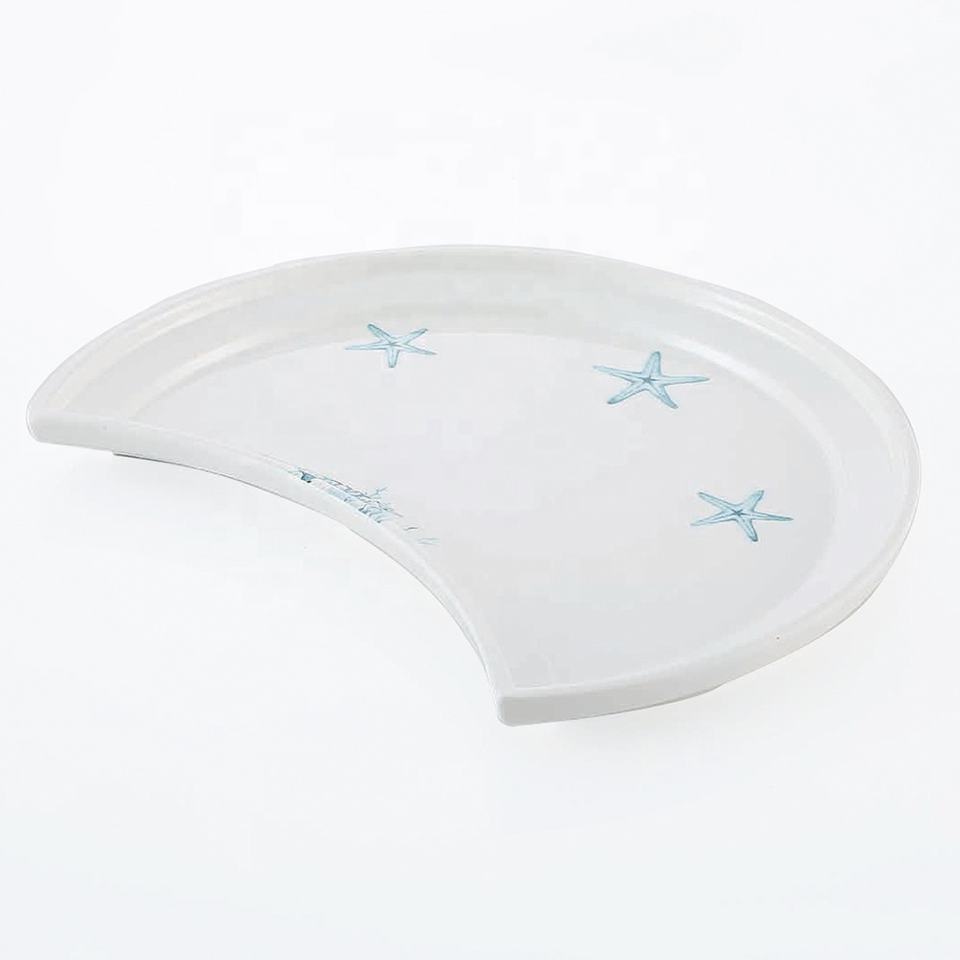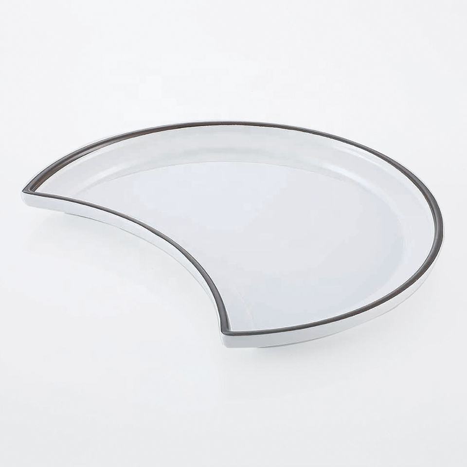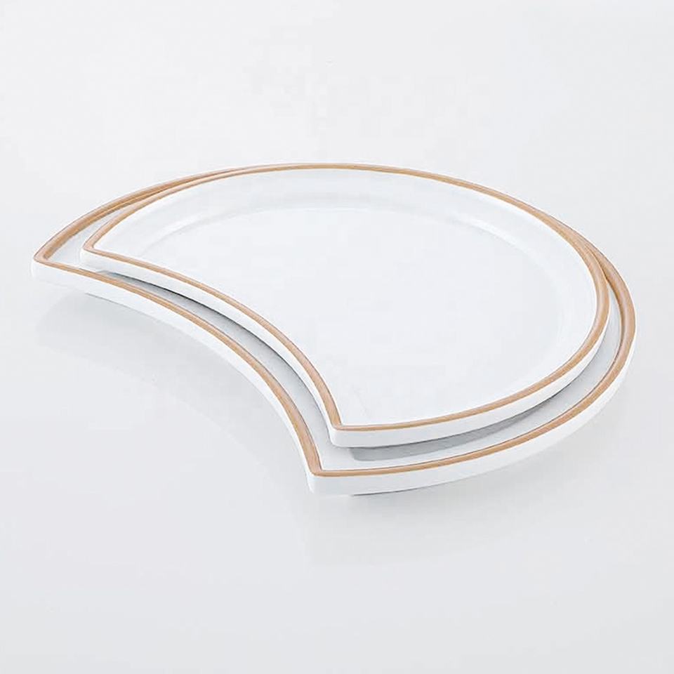 Vajilla irrompible para restaurante Plato de cena de melamina blanca con borde de impresión en forma de Luna única