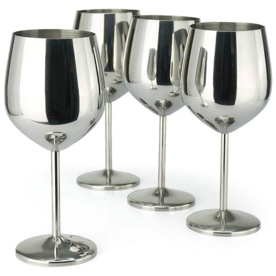 Juego de Copas de Vino Irrompibles de Acero Inoxidable, Copas Metálicas Plateadas, Flautas de Champán Resistentes a los Golpes para Bar, Fiestas y Bodas