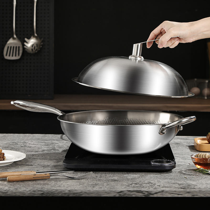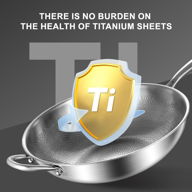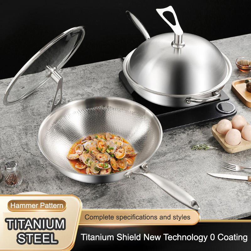 Wok de Titanio Forjado Saludable Sin Recubrimiento, Bajo en Humos, Patrón de Martillo, Antiadherente, para Cocina de Gas, Utensilio de Cocina de Alta Calidad
