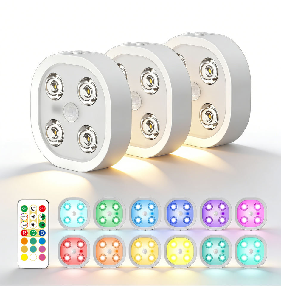 Iluminación Bajo Muebles, Luces LED Recargables con Sensor de Movimiento y Control Remoto, 12 Colores, Magnéticas, Adhesivas, para Cocina