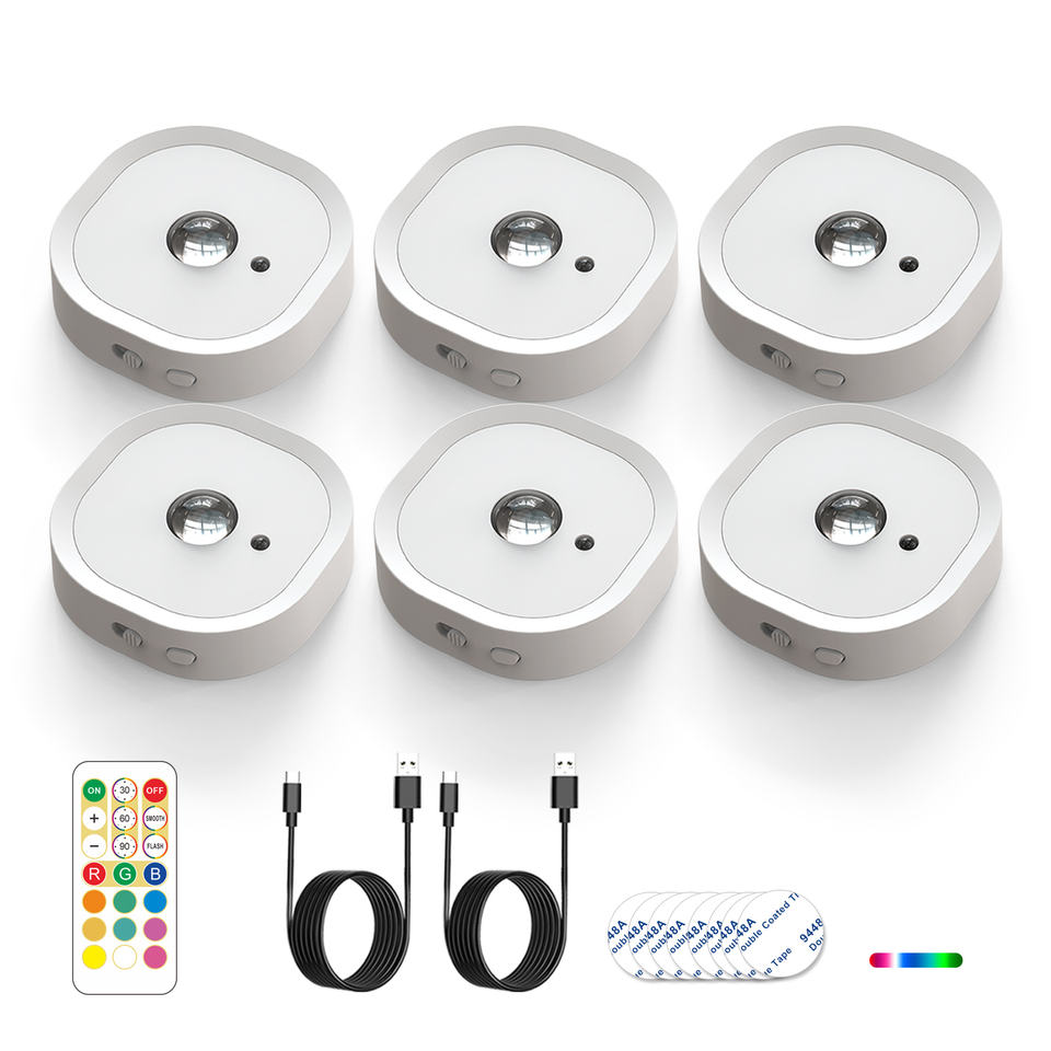 Iluminación Bajo Muebles, Lámpara Recargable con Sensor de Movimiento y Control Remoto, 12 Colores RGB, Luz Magnética Adhesiva para Cocina