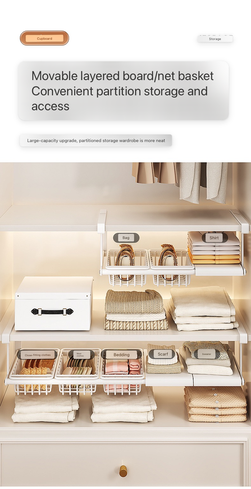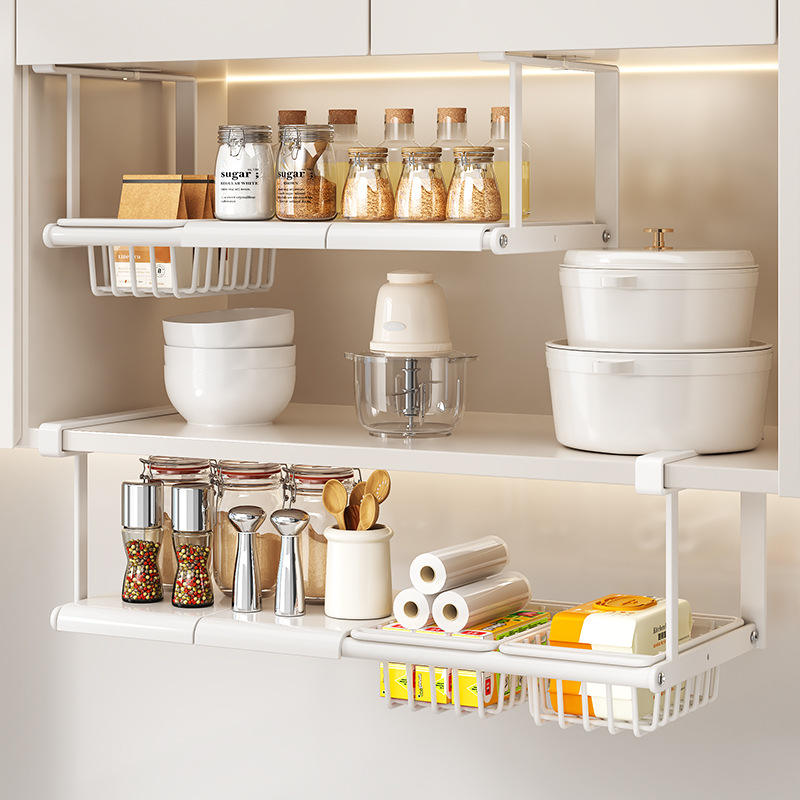 Cesta de Almacenamiento Debajo del Estante, Cestas Colgantes Expandibles Debajo del Gabinete, Organizador de Estantes, Ahorrador de Espacio para Cocina