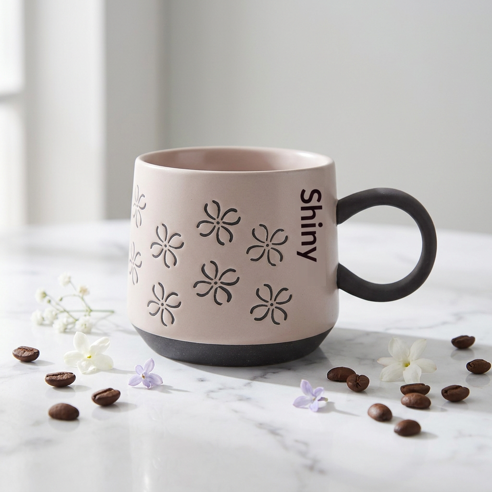 ElegirColor: Taza de arcilla negra y rosa - Trébol de cuatro hojas