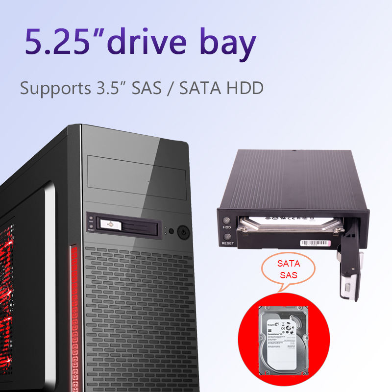 Unestech - Carcasa para Disco Duro SATA SAS de 3.5 Pulgadas, Rack Móvil de Aluminio sin Bandeja para Ranura Óptica de 5.25, Carcasa para Rack Móvil sin Bandeja