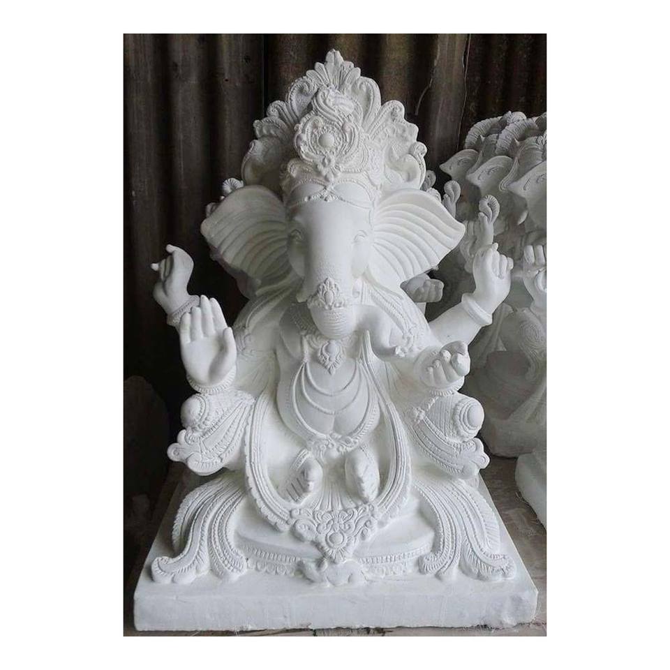 Nombre del Producto:Estatua de Ganesha sentado de mármol blanco indio sin terminar