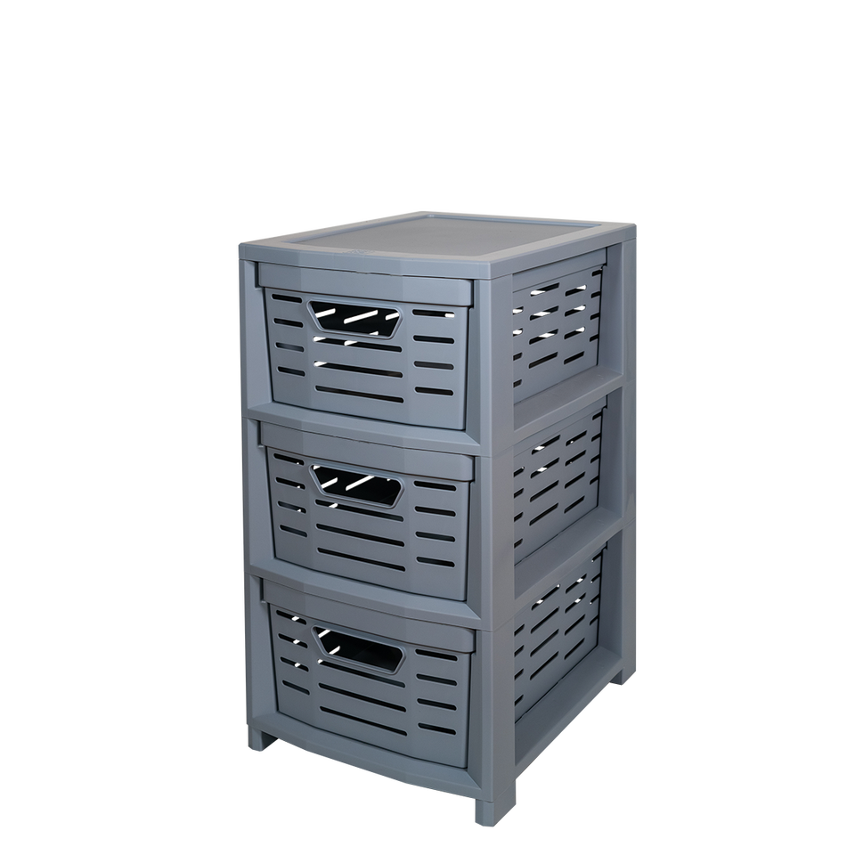 Carrito Multiusos de Cocina Uniko PP con 3 Cajones, Gabinete de Almacenamiento Gris, Moldeado por Inyección, 365x285x515mm
