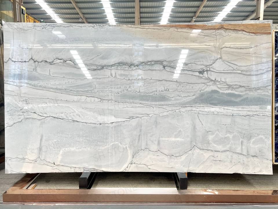 Losas de Cuarcita Natural Union Stone Infinity Opus Blancas Pulimentadas, Diseño de Pared Interior Moderno y Lujoso para Baño, Villa, Comedor