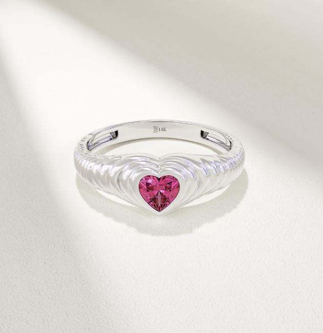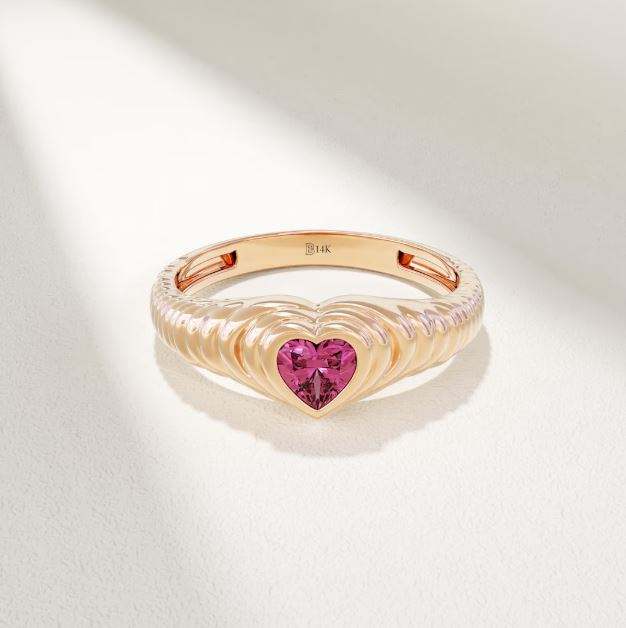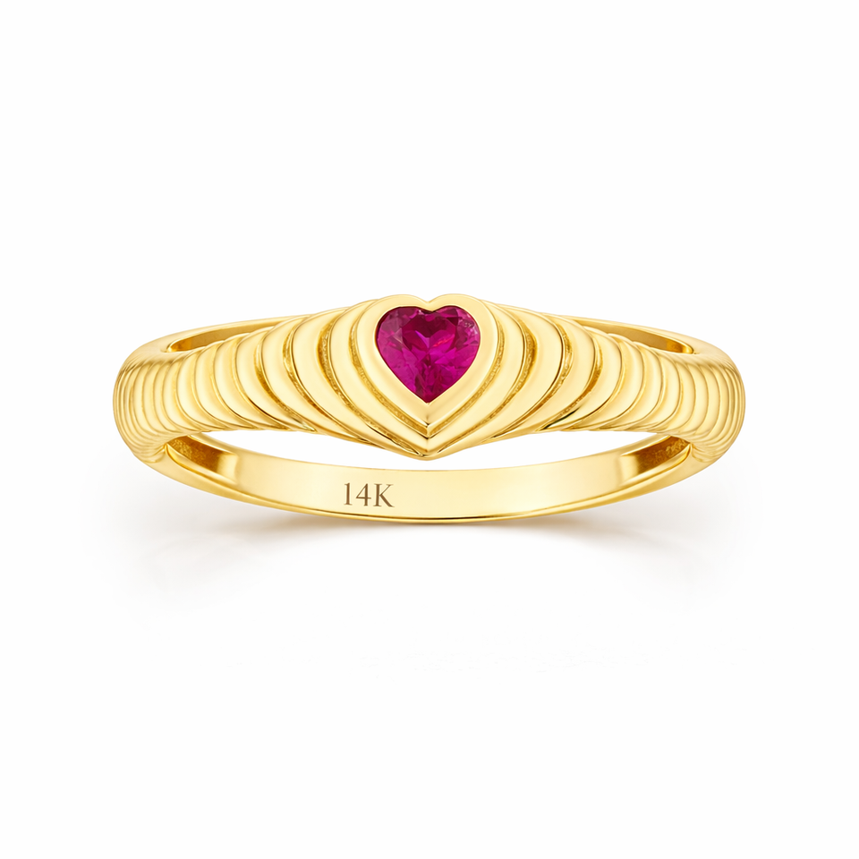 Nombre del producto:Anillo de compromiso de oro de 14 quilates con rubí natural en forma de corazón