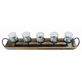 Soporte de vela artesanal único con un mármol texturizado como diseño geométrico y acentos de madera cálidos para una pieza llamativa