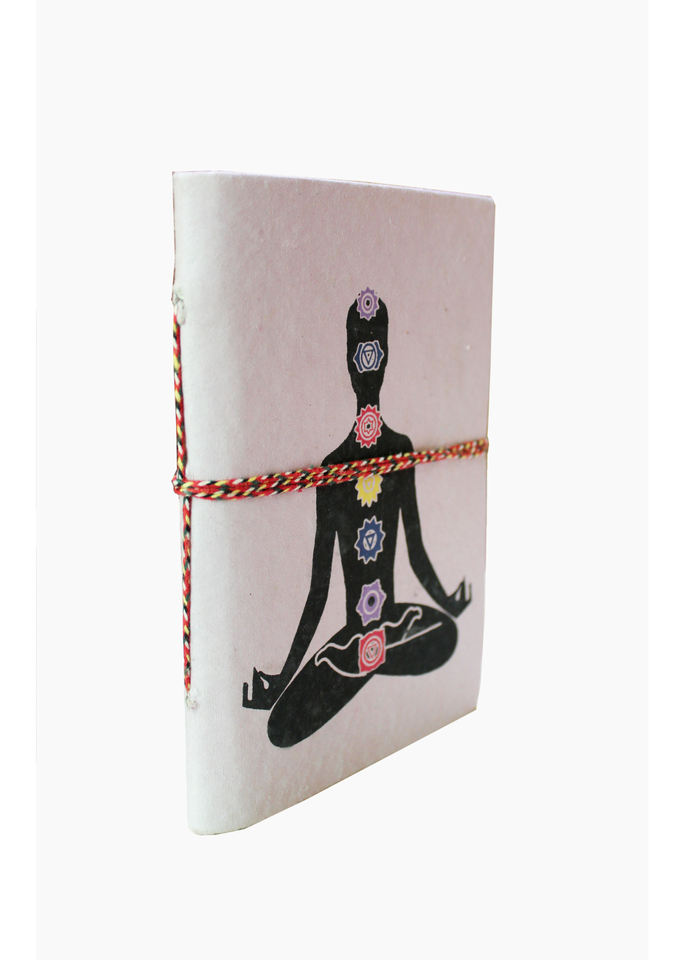 Diario de cuero texturizado de tamaño B5 único, diseño de cuerpo humano de siete elementos, Chakras de Yoga, cierre de hilo colorido para oficina de negocios