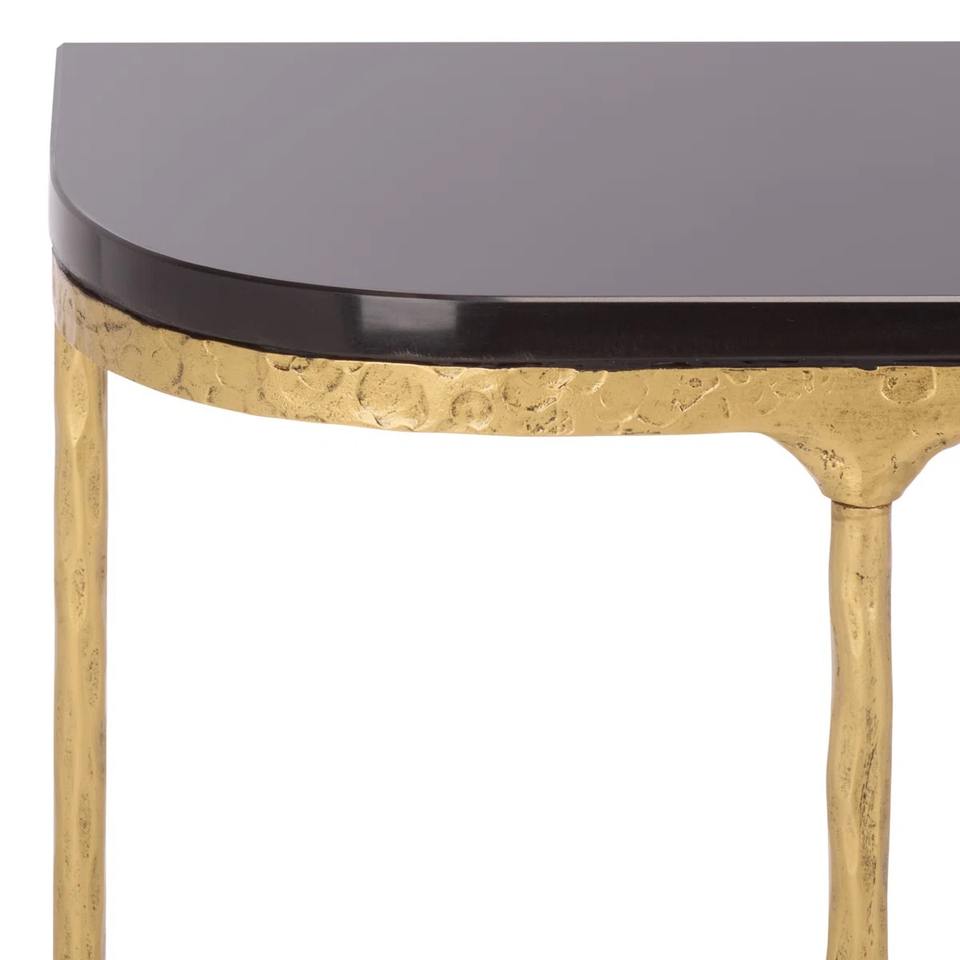 Mesa redonda única de metal negro que combina una construcción robusta y un diseño elegante, perfecta para espacios de entretenimiento desde dentro