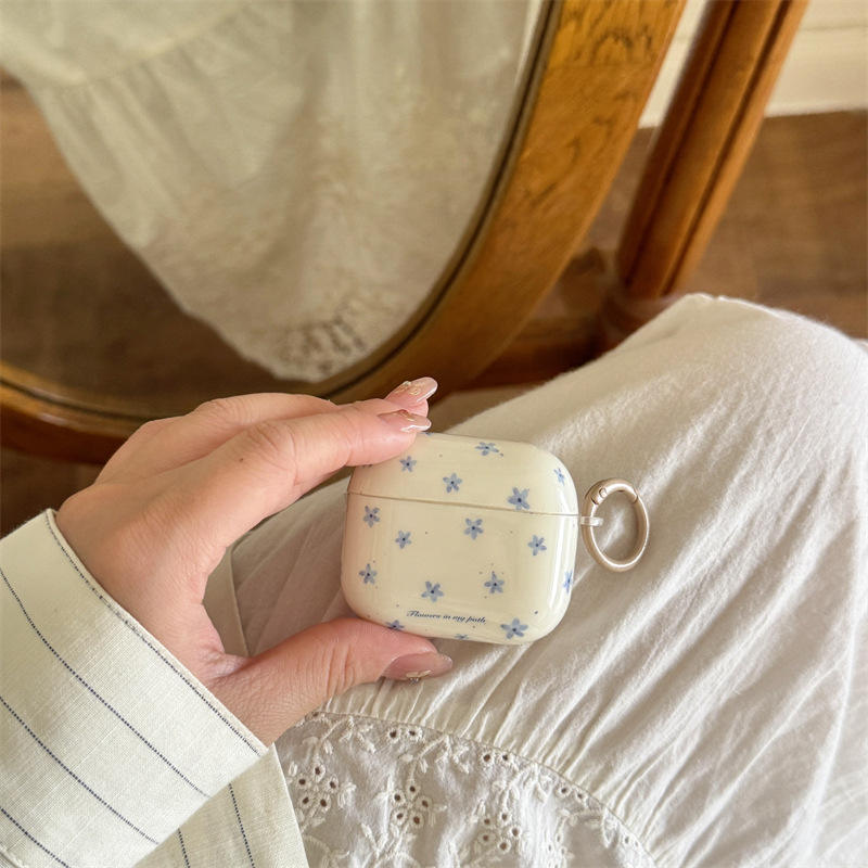 Funda con diseño floral azul único para AirPods Pro 2 y AirPods 2 3 4, cubierta protectora inalámbrica Bluetooth