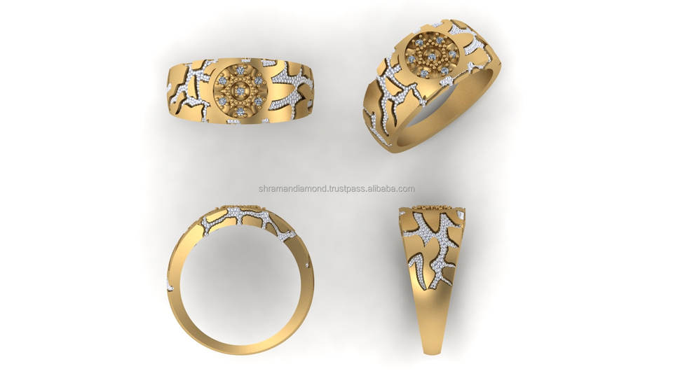 Anillo de Diamante Moissanita Original de Oro Sólido de Dos Tonos de 10K con Diseño Clásico Único para Hombre, Engaste Pavé, para Bodas y Fiestas