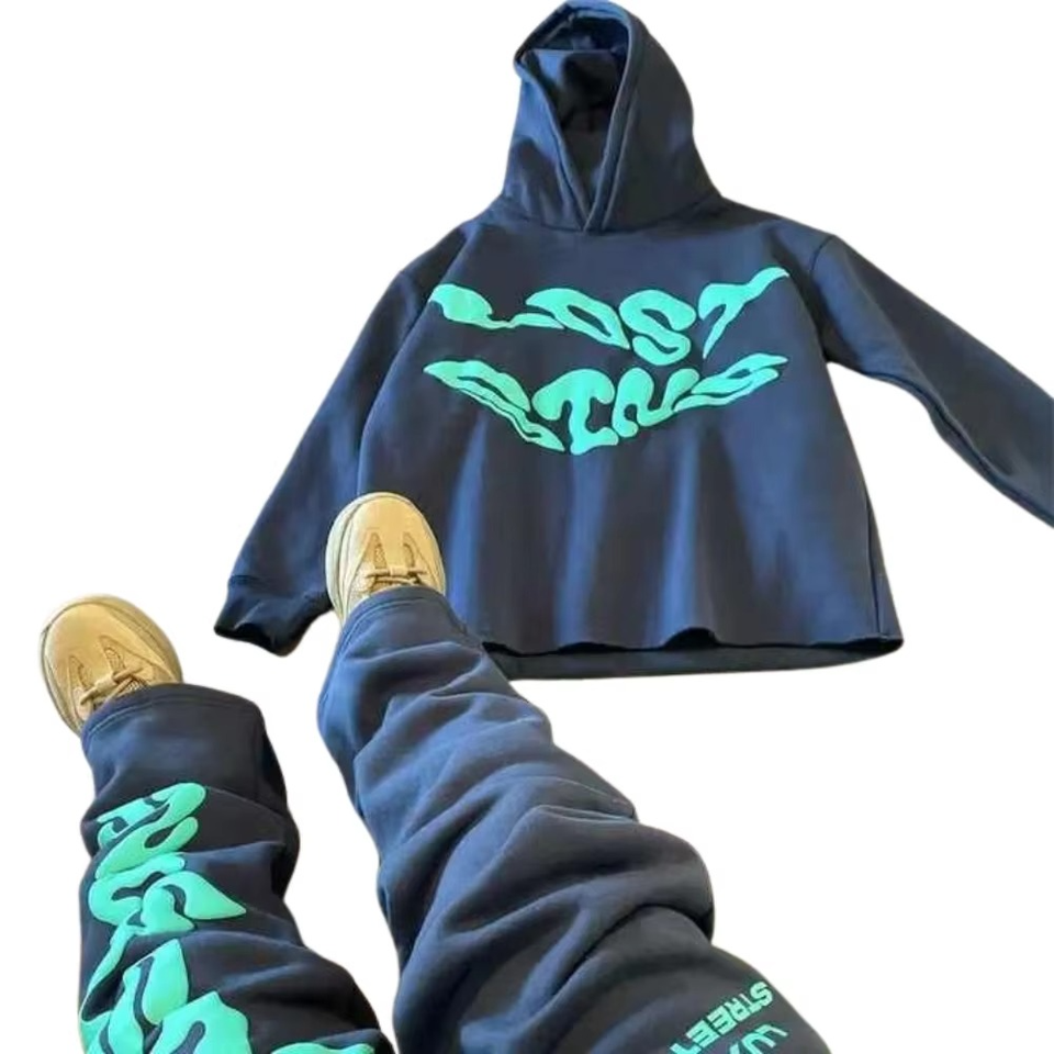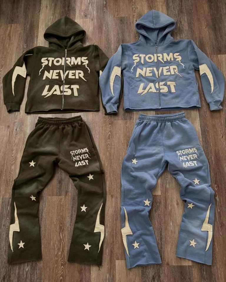Chándal con estampado DTG en relieve de estilo único y color novedoso para hombre, de peso pesado, fabricado en fábrica, con estampado en relieve y lavado ácido.