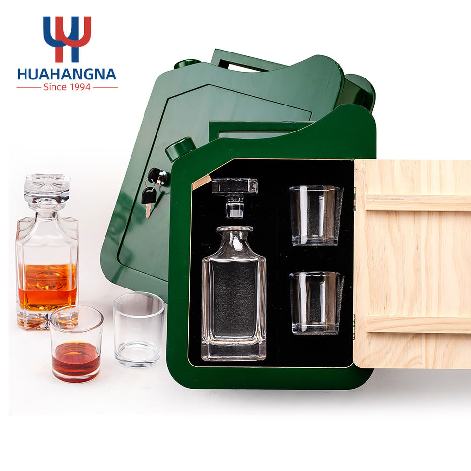Juego de Regalo de Decantador de Whisky de Cristal con Logotipo Personalizado Único, con Vasos de Whisky en un Gabinete de Madera Portátil