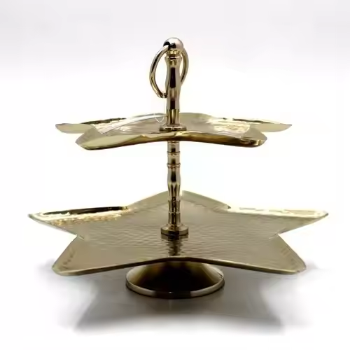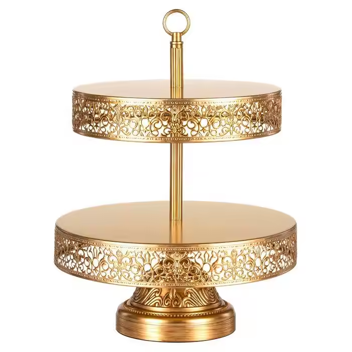 Soporte de 2 niveles de plata para exhibición de pasteles de decoración única hecho de material metálico soporte grande para servir pasteles de Decor IMPEX