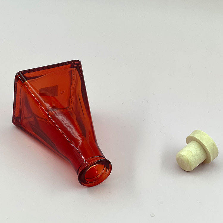 Botella Difusora de Aroma de Vidrio con Forma de Pirámide Roja Vacía de 100 ml, Diseño Único, Decoración para el Hogar, con Tapón de Corcho