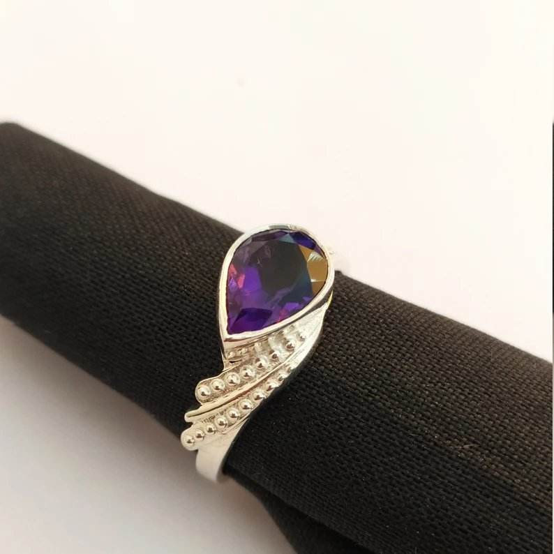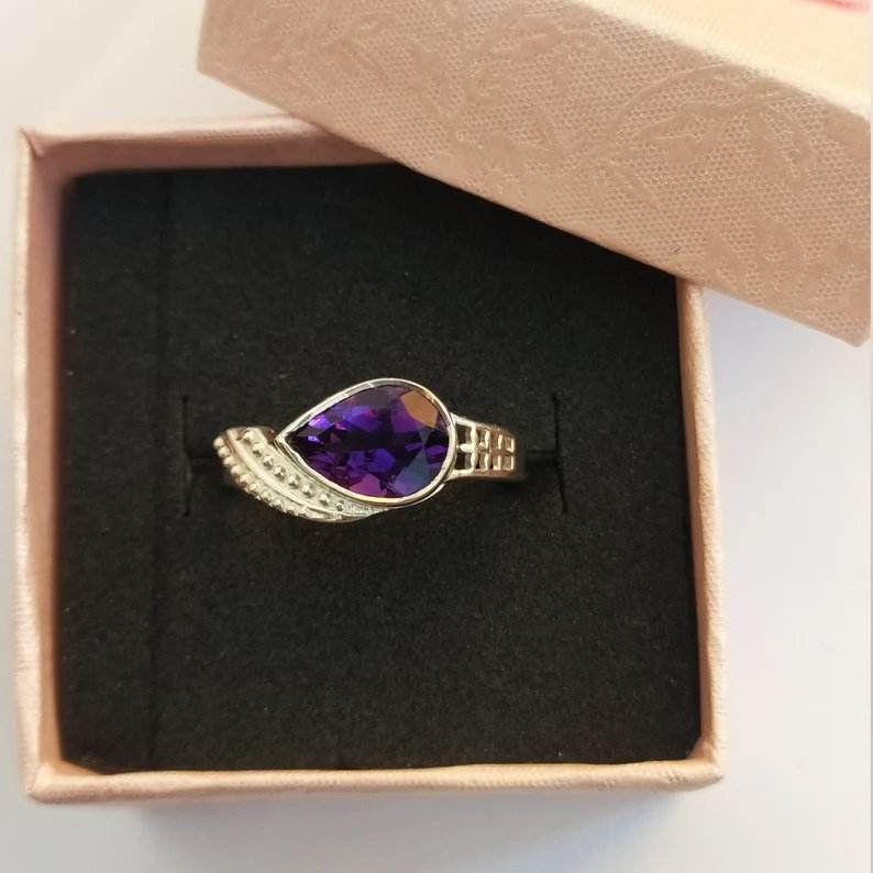 Anillo de compromiso de boda con piedra amatista de plata de ley 925 de diseño único, joyería fina para mujer para fiesta, regalo del Día de San Valentín