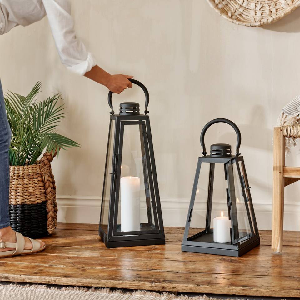 Linternas decorativas de suelo de Ramadán de Navidad de Metal negro de diseño único, portavelas de madera, tarros para jardín doméstico para vela