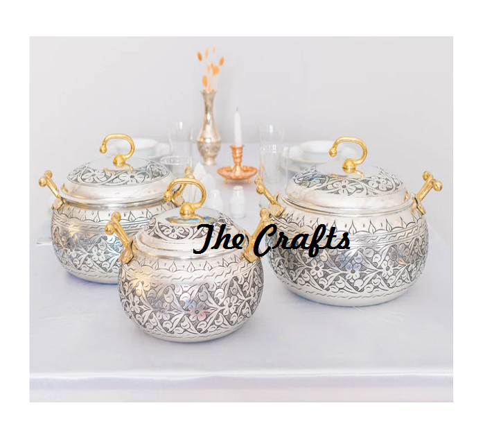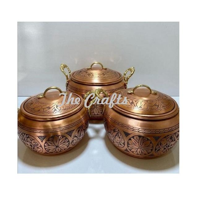 Diseño único cobre plata Color utensilios de cocina olla para servir conjunto de cuatro ollas de cocina de forma redonda para superventas