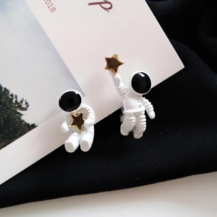 Único diseño de dibujos animados lindo astronauta astronautas estrella pendientes