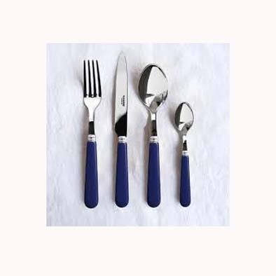 Juego de cubiertos Royal de diseño único Cubiertos de acero inoxidable con mango de resina azul Espejo plateado pulido y chapado