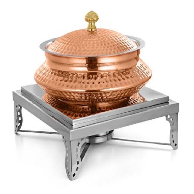 Calentador de alimentos de diseño único Almacenamiento de alimentos de forma redondeada Plato de frotamiento para servir a mano Buffet Pot Best Seller