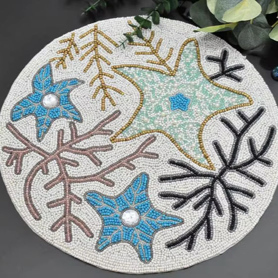 Mantel Individual de Vidrio con Diseño Único, Bordado a Mano con Patrón de Limones, Aislante del Calor, Redondo, para Cocina