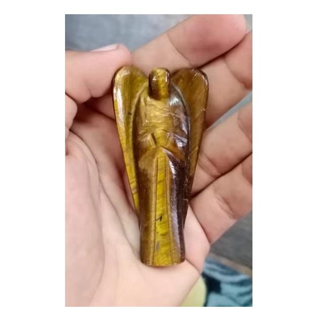 Estatua de Ángel Guardián de Ojo de Tigre de 2 pulgadas, tallada a mano con diseño único, para sanación Reiki y equilibrio de chakras, disponible al mejor precio.