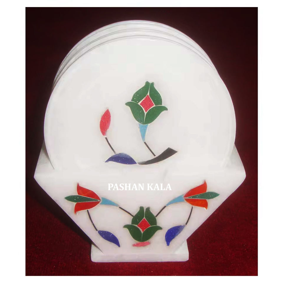 Juego de posavasos de té de forma redonda con incrustaciones de mármol blanco puro hecho a mano de diseño único, uso para el hogar y la Mesa, pieza decorativa al mejor precio